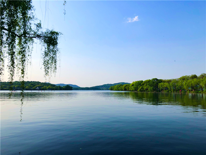 杭州西湖草地一角,清新迷人